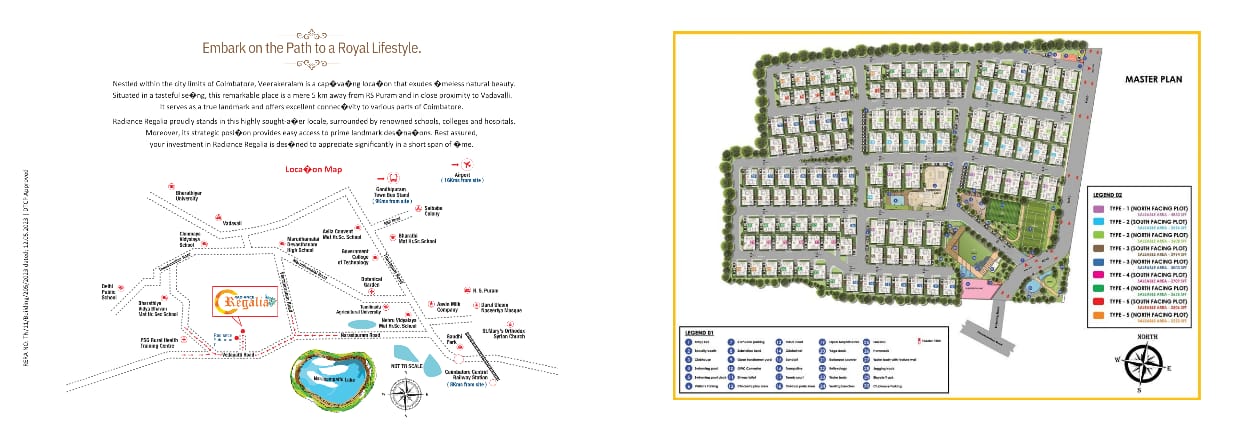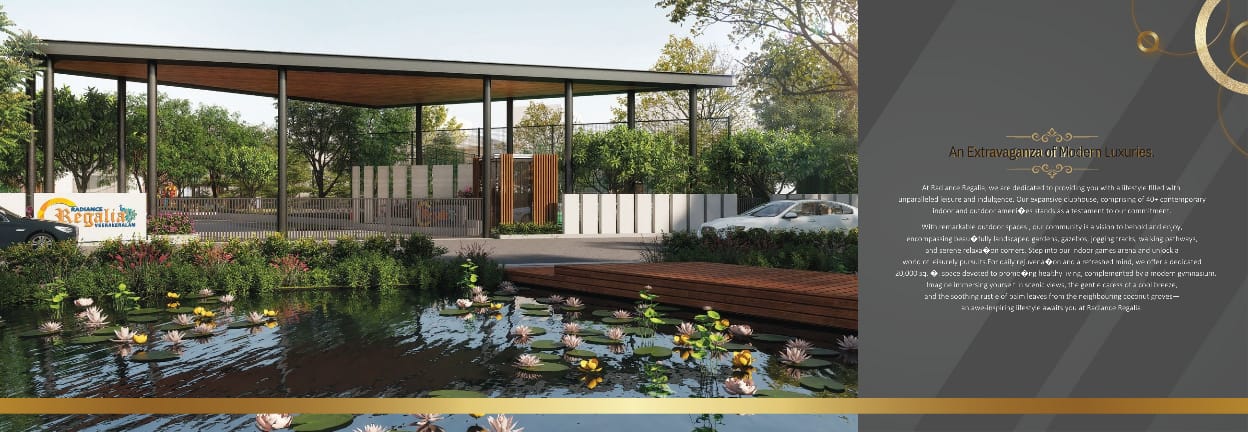 Discover the epitome of exclusivity and seize a once-in-a-lifetime opportunity at 'Radiance Regalia'. An extraordinary urban luxury residential villa community by Radiance Realty. Nestled in the serene surroundings of Veerakeralam in Coimbatore, this group housing development offers an unparalleled living experience Spread across sprawling 10.52 acres of tranquil landscapes adorned with coconut groves, Radiance Regalia, a gated community in Veerakeralam, invites you to immerse yourself in the sheer magnificence of contemporary living in style Strategically located in close proximity to the city's cosmopolitan hub of RS Puram and the thriving neighbourhood of Vadavalli, this remarkable villa development stands out as the pinnacle of luxury. Salient Features Just 10 mins from RS Puram 10.52 acre fully gated community with 4 per security system 125 villas in 5 different typologies 3, 3.5 & 4BHK premium villas thoughtfully designed with Home theatre room..